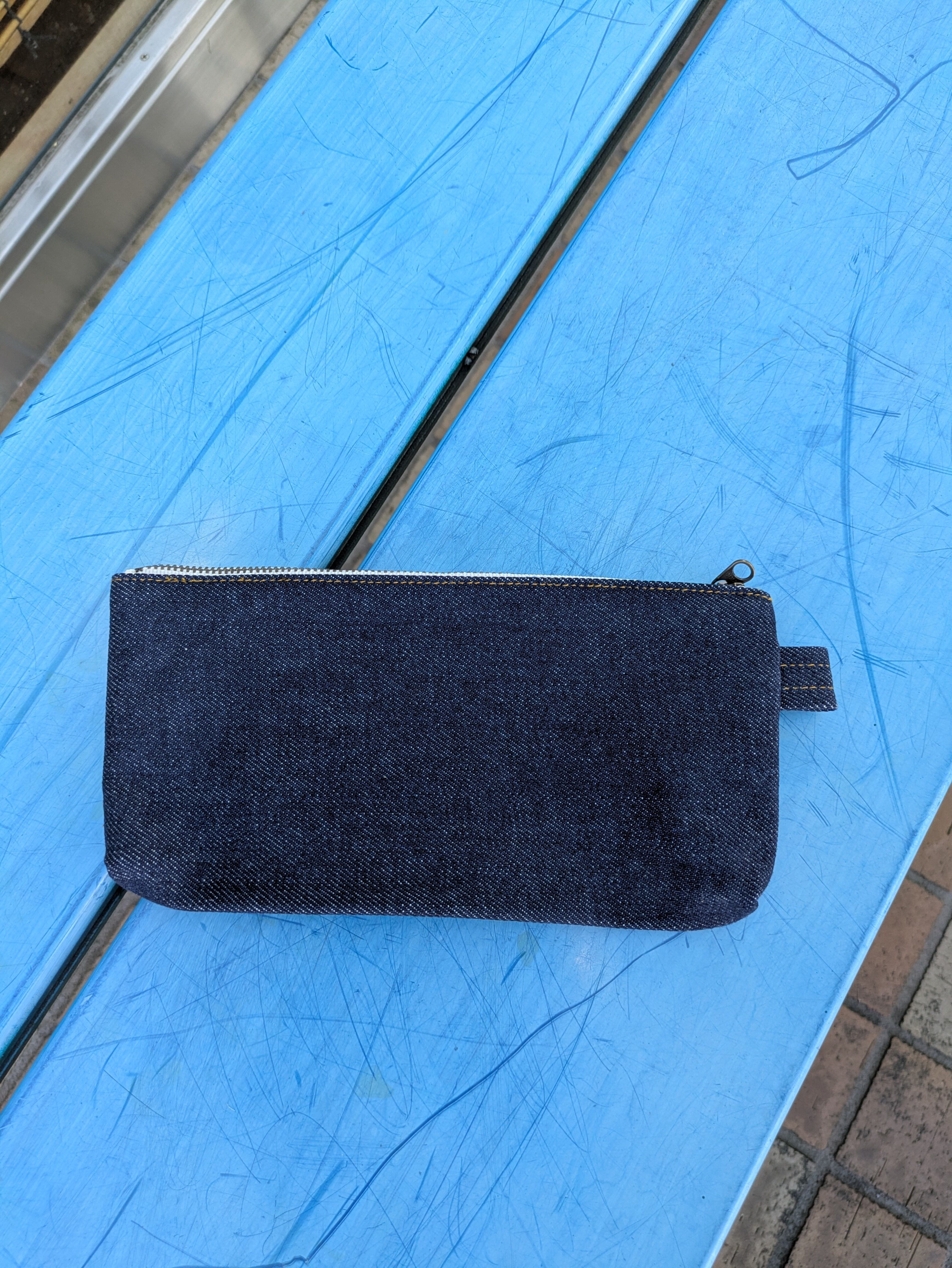 デニム発祥の地 倉敷市児島で製造 丁寧な縫製にこだわった全て日本製です。 シンプルでありながら見た目以上の収納力を発揮します。 ペンケースとして大人気。 素材 綿100% 色 ネイビー サイズ W20.5xH10.5x D2cm *この商品は素材の特性上、汗や雨などでぬれた場合、 色移りする場合がありますので、十分ご注意ください。